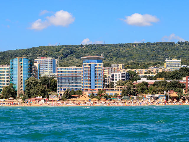 Златни пясъци е най-големият курорт по северното черноморско крайбрежие. Разположен е на 18км североизточно от Варна и на 488км източно от София. На север достига до Кранево, а на юг - до вилно селище Чайка. В близост се намира курортният комплекс кк.Св.Св. Константин и Елена. Постоянната температура от 27оС , микроклимата през сезона, минералните води, топлото море, прекрасният плаж и вековните гори превръщат Златни пясъци в прекрасно място за почивка и забавления . Плажната ивица, покрита със златист пясък е с дължина 3,5км и е широка до 100м.