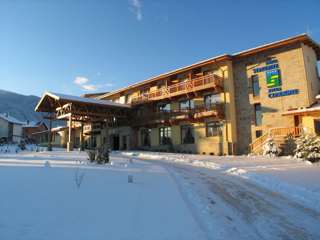 Хотел Стражите е комфортен и модерен. Намира се на 600 м. от центъра на г. Банско. Разрешено за домашни животни. В хотела има 135 двойни стаи, 9 апартамента, 16 мезонета.
